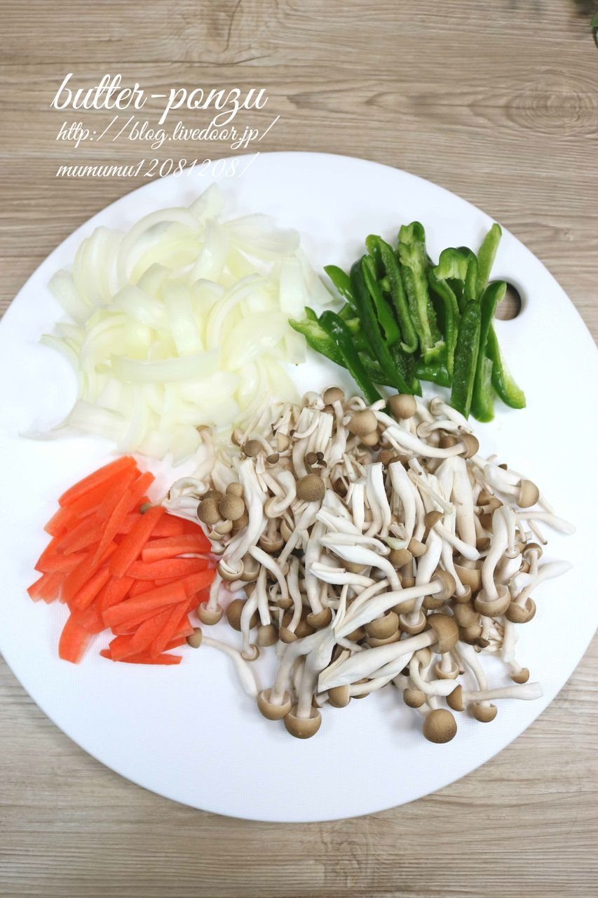 ①しめじは小房に分けておき、にんじんは短冊切り、