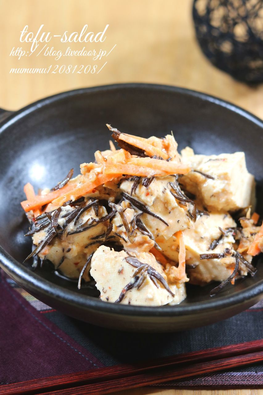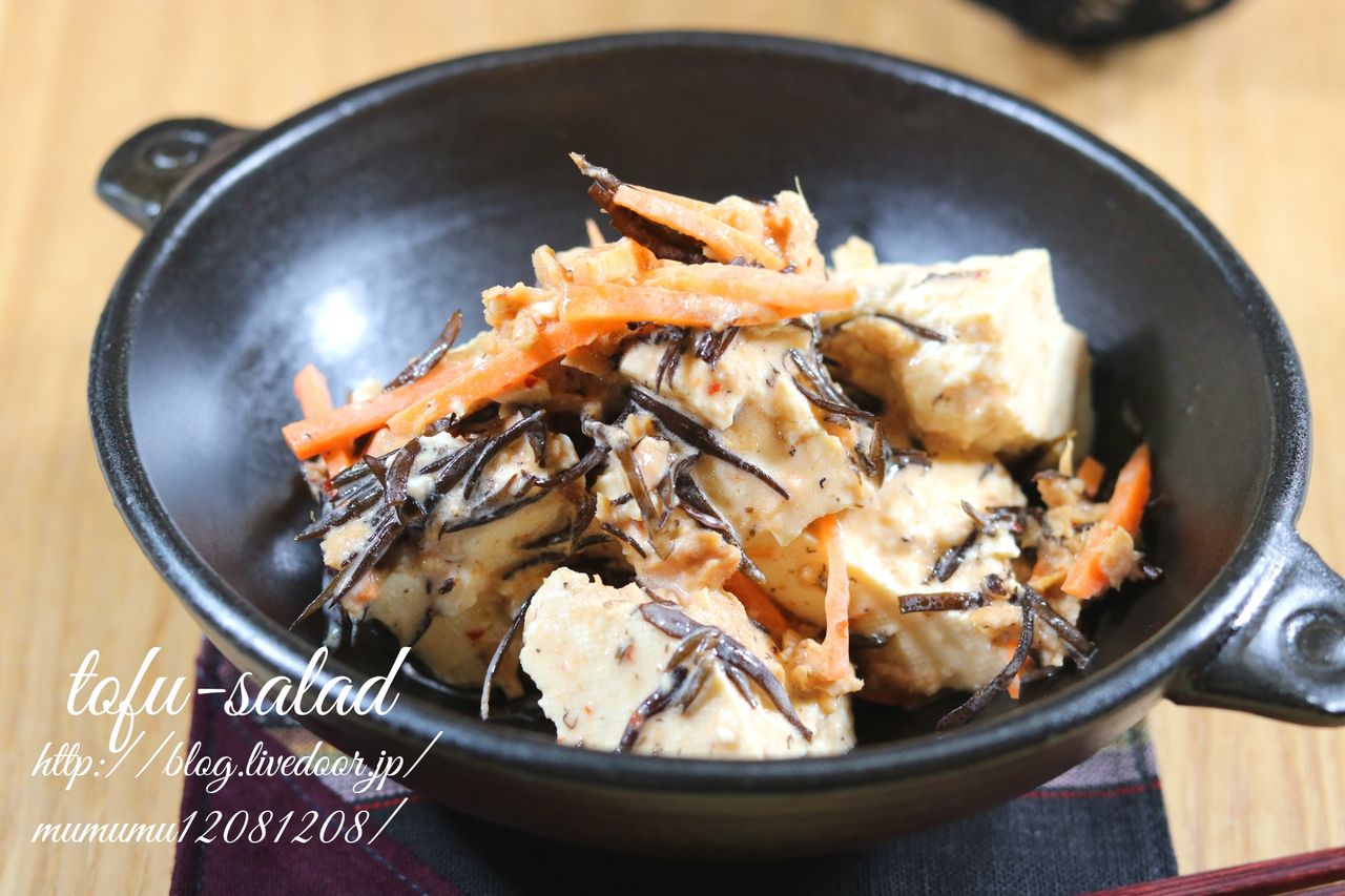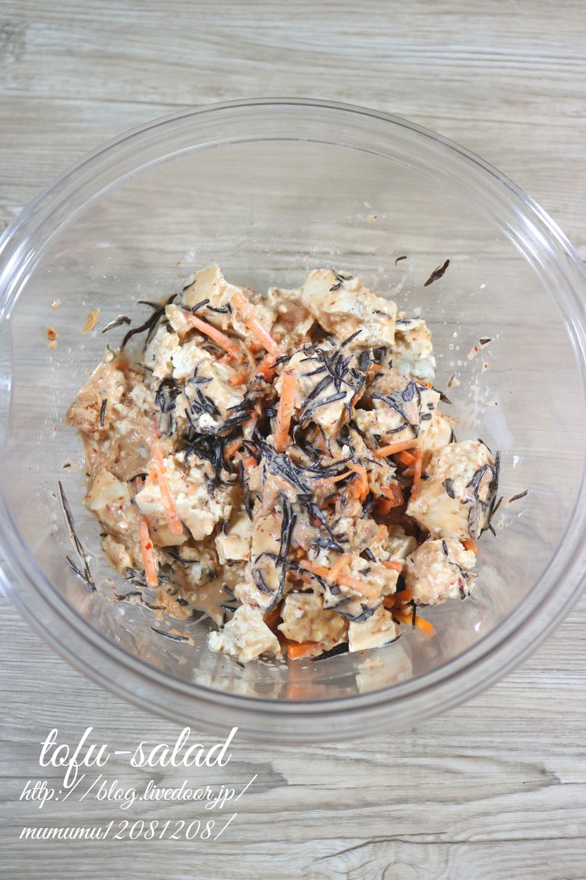 所要時間は、豆腐の水切りとひじきを戻す時間を省いたら1分レシピかな。