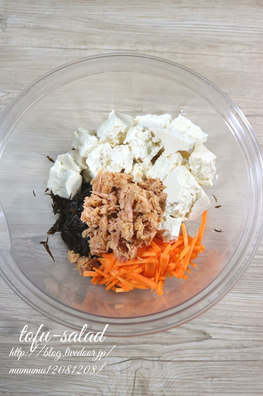オイマヨでピリッと辛い中華ドレッシングを作って、淡白な味代表の豆腐でサラダです。