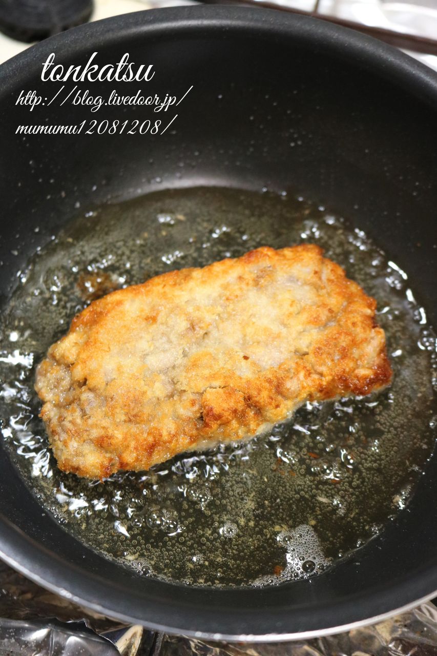 ⑤フライパンにサラダ油を入れて熱し、豚肉を両面揚げる。