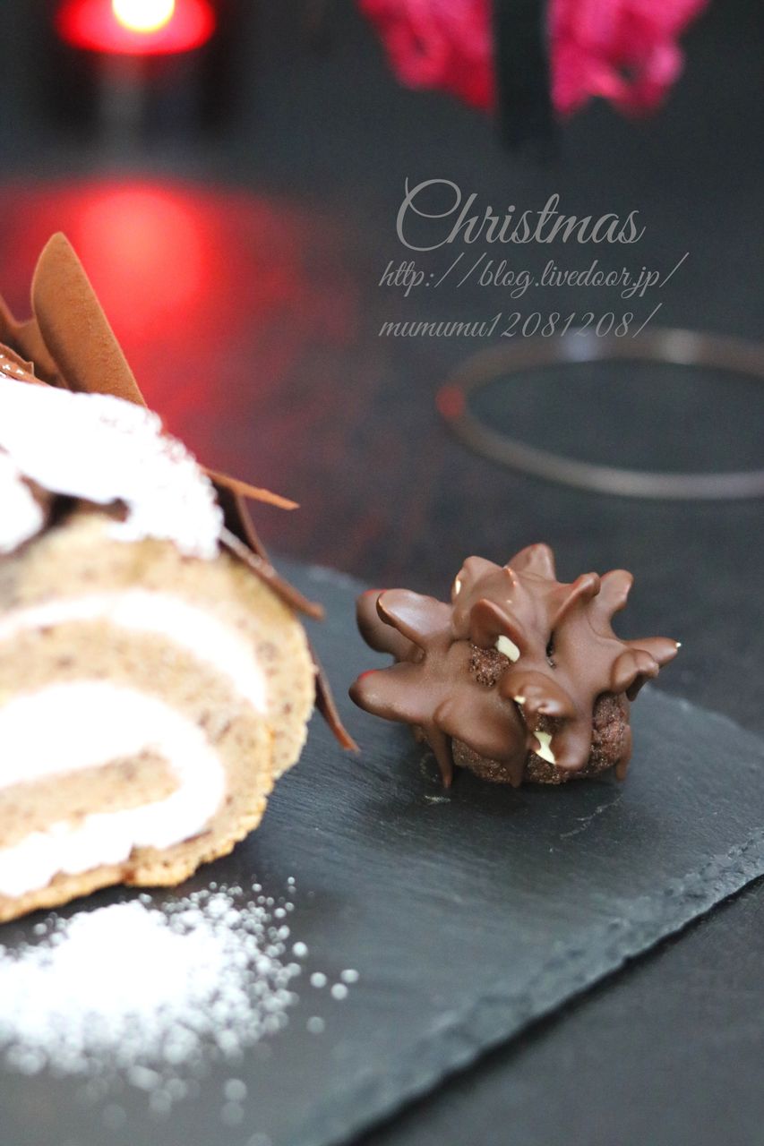 ブッシュ・ド・ノエルの回りにチョコクリームを塗ると言う、手間な作業を省きました。