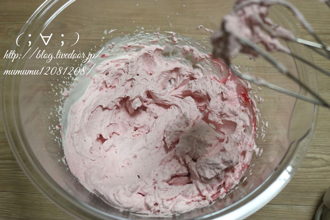 クレームシャンティを作る時にラズベリーピューレを入れたらあっという間に固まる。