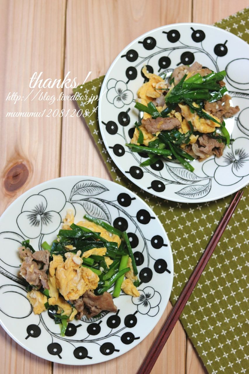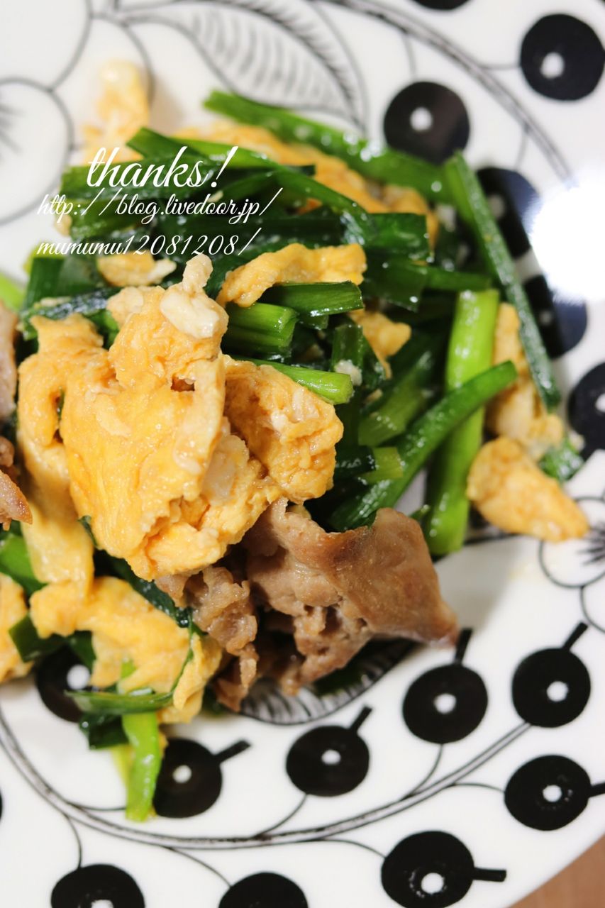 豚肉とニラの甘辛炒め・たまご入り。
