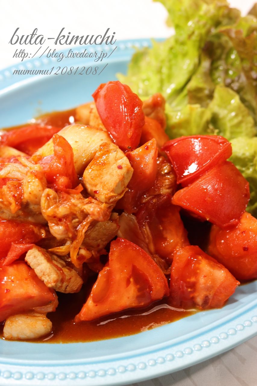 女性でもさっぱりと食べる事が出来る豚キムチです。トマトをたっぷり入れて、ヘルシーに仕上げました。男性的なイメージがある豚キムチですが、トマトを入れる事で少し洋風になりあっさりと食べる事が出来ます。
