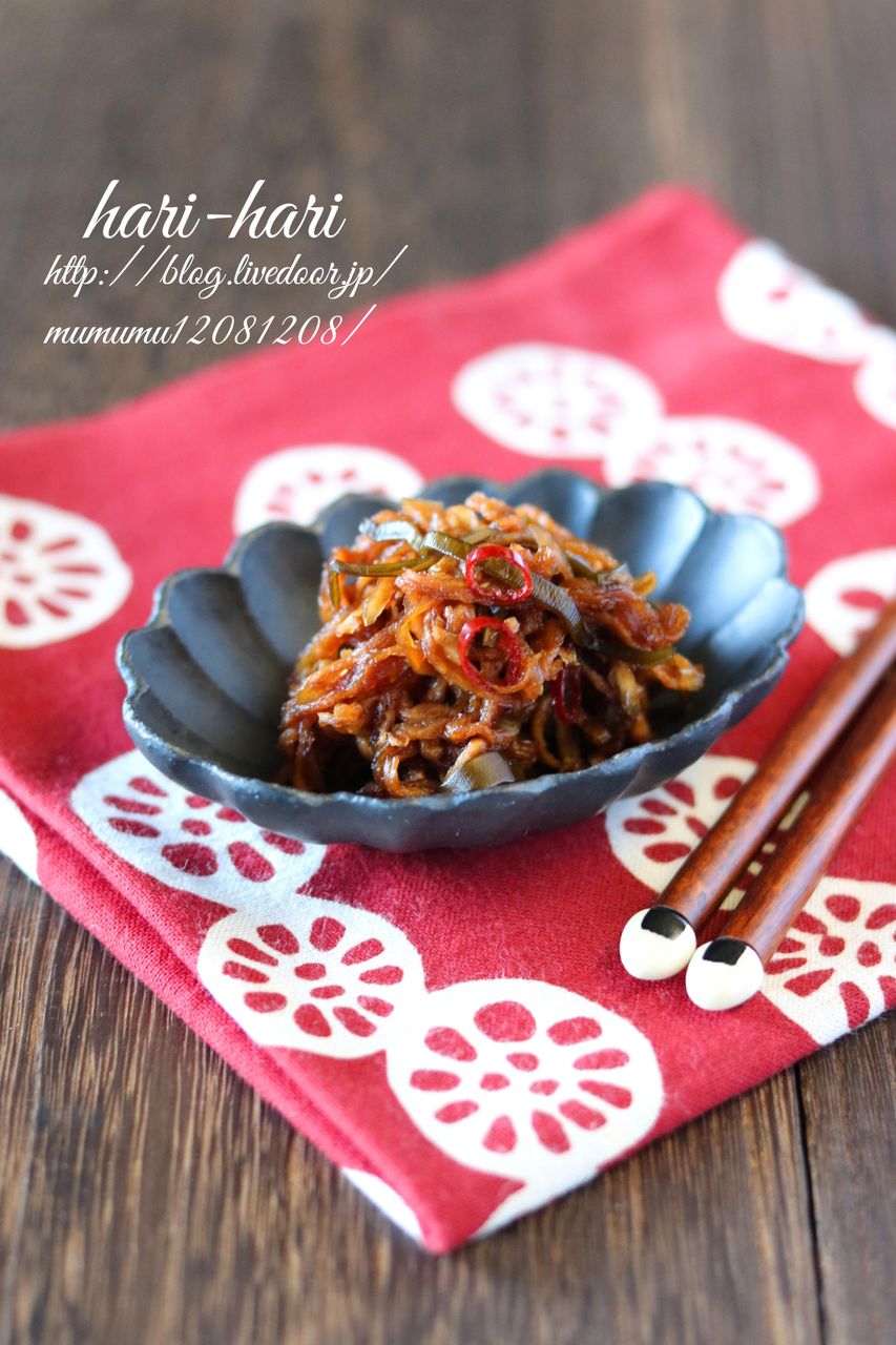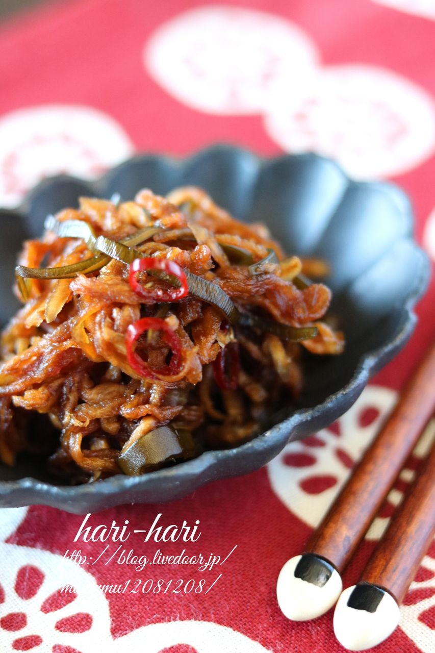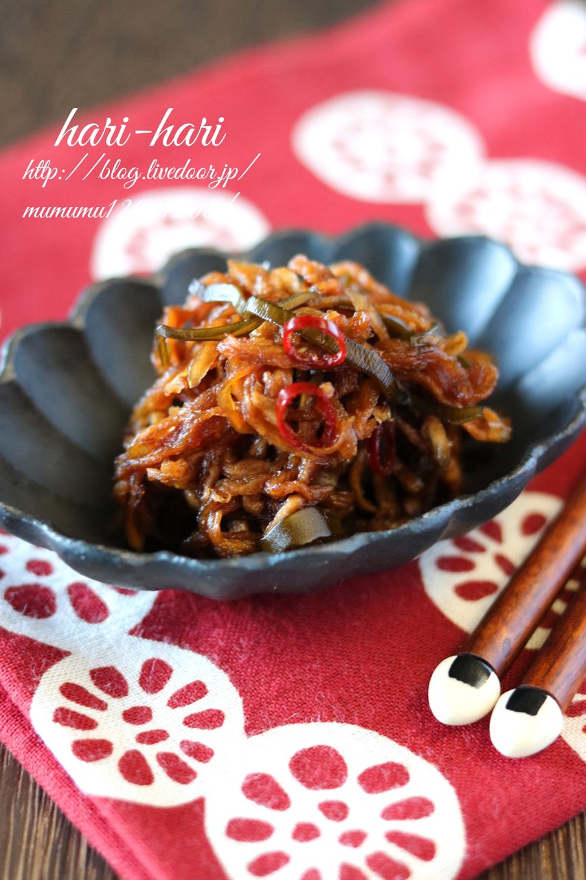 そんな訳で、家にある材料(←ほぼ乾物。)で、作り置きに最適なはりはり漬けを作りました。
