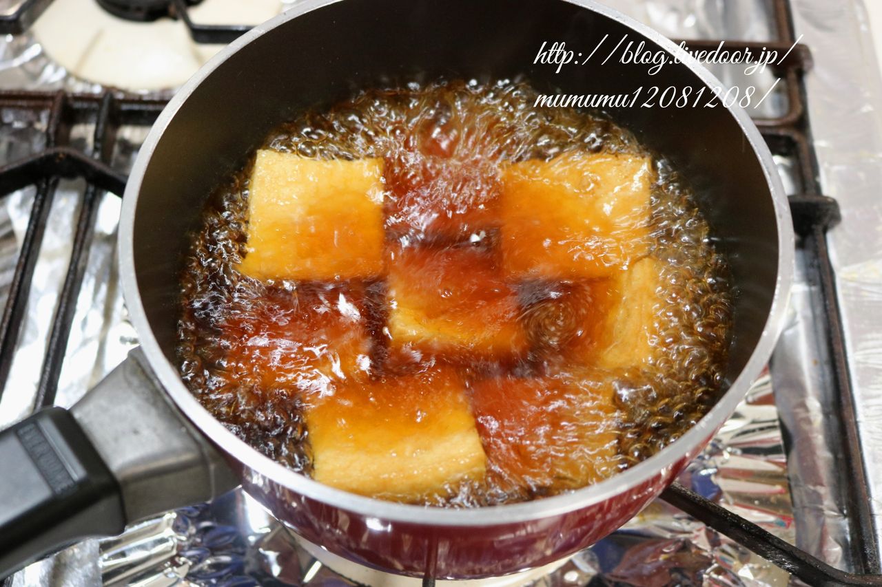 ③厚揚げ(絹揚げ)を入れて汁気が無くなるまで煮詰める。