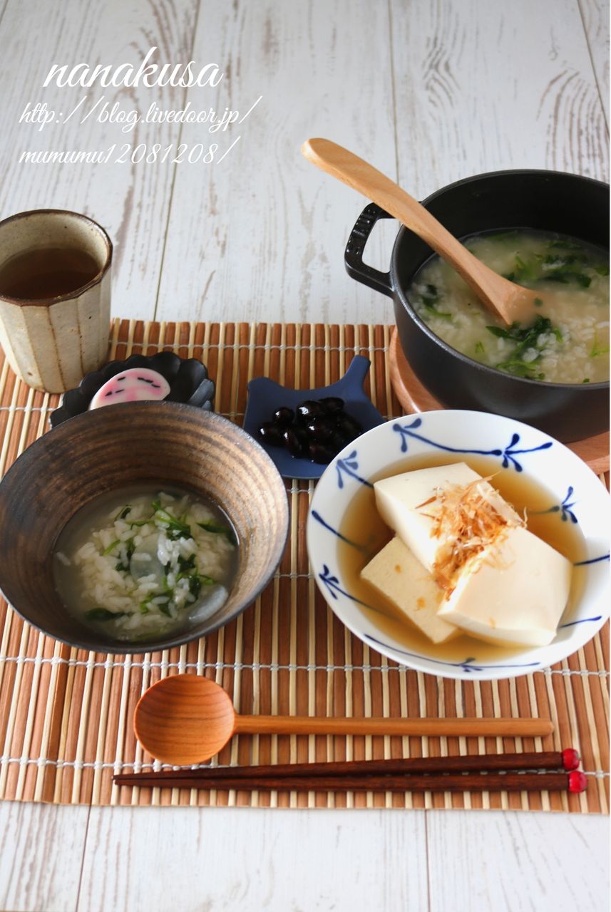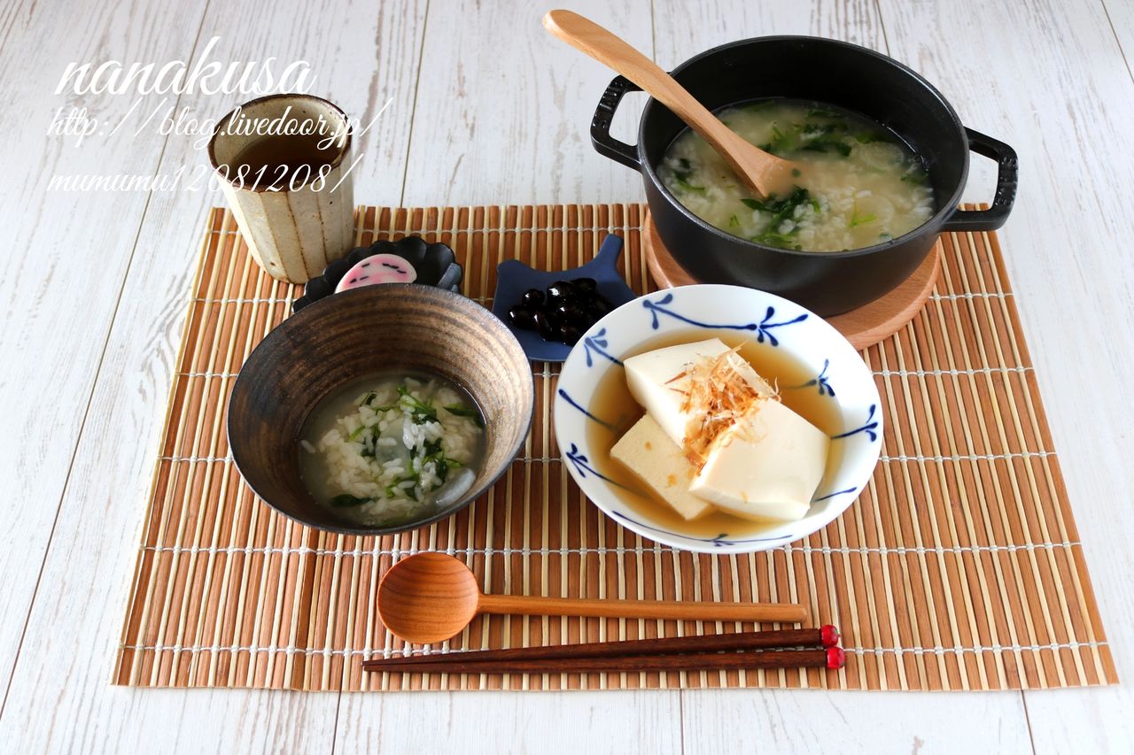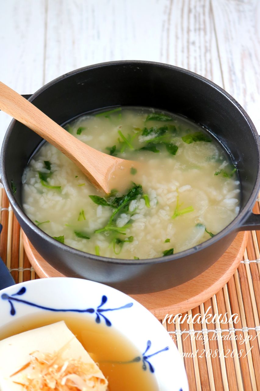 白がゆは苦手なのでアゴ出し汁で米からコトコトコト。