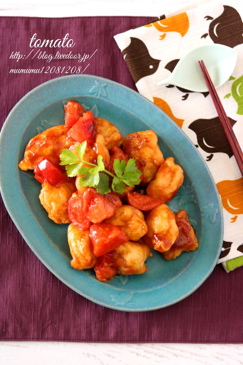 トマトが甘いので、甘酢の砂糖は控え目にしました。