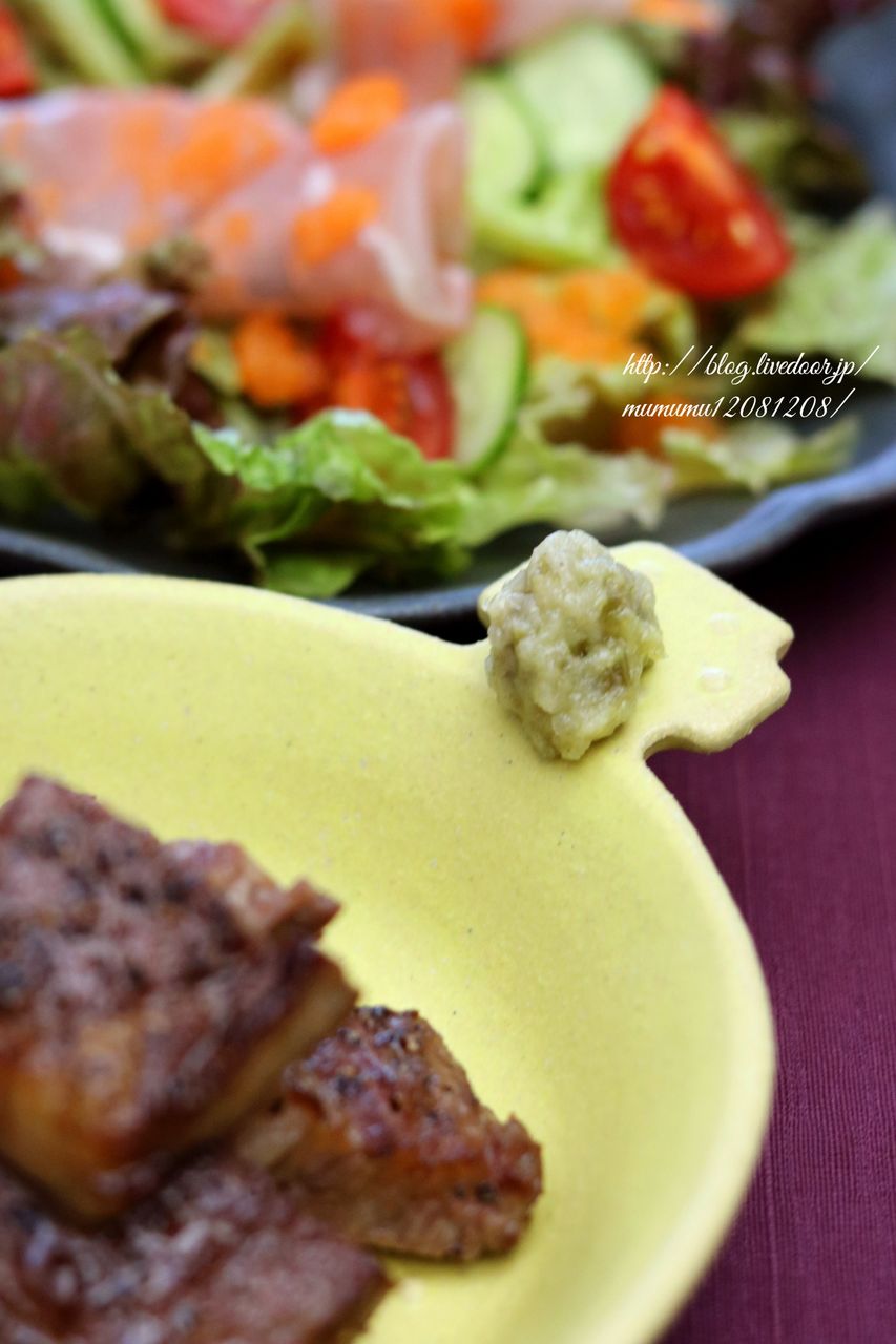 「やっぱりステーキは美味しいわさびが合うよね。」