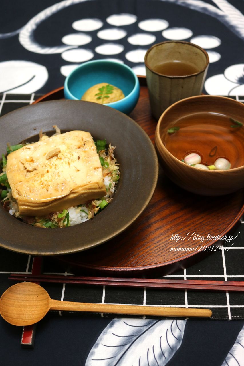 DXとうめし・がんもどきの煮物・てまり麩のお吸い物。