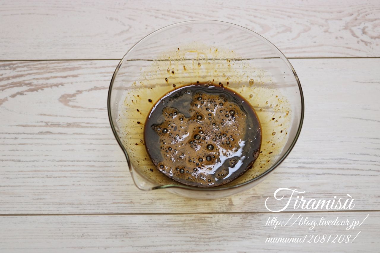 ⑧オーブンで焼いてる間に●を合わせてコーヒーシロップを作る。