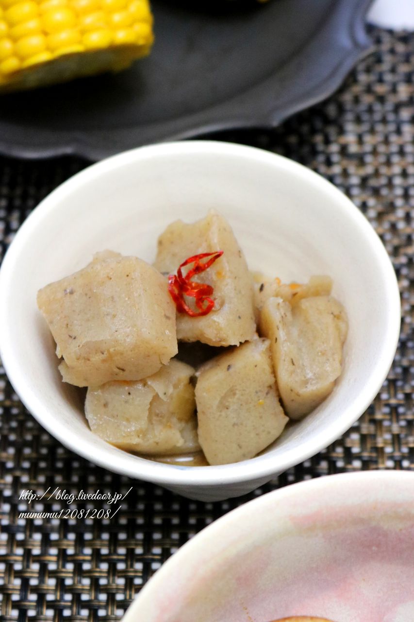 根菜類も一緒に煮込んでこんにゃくだけを盛り付けたと言う半ば嫌がらせの小鉢。