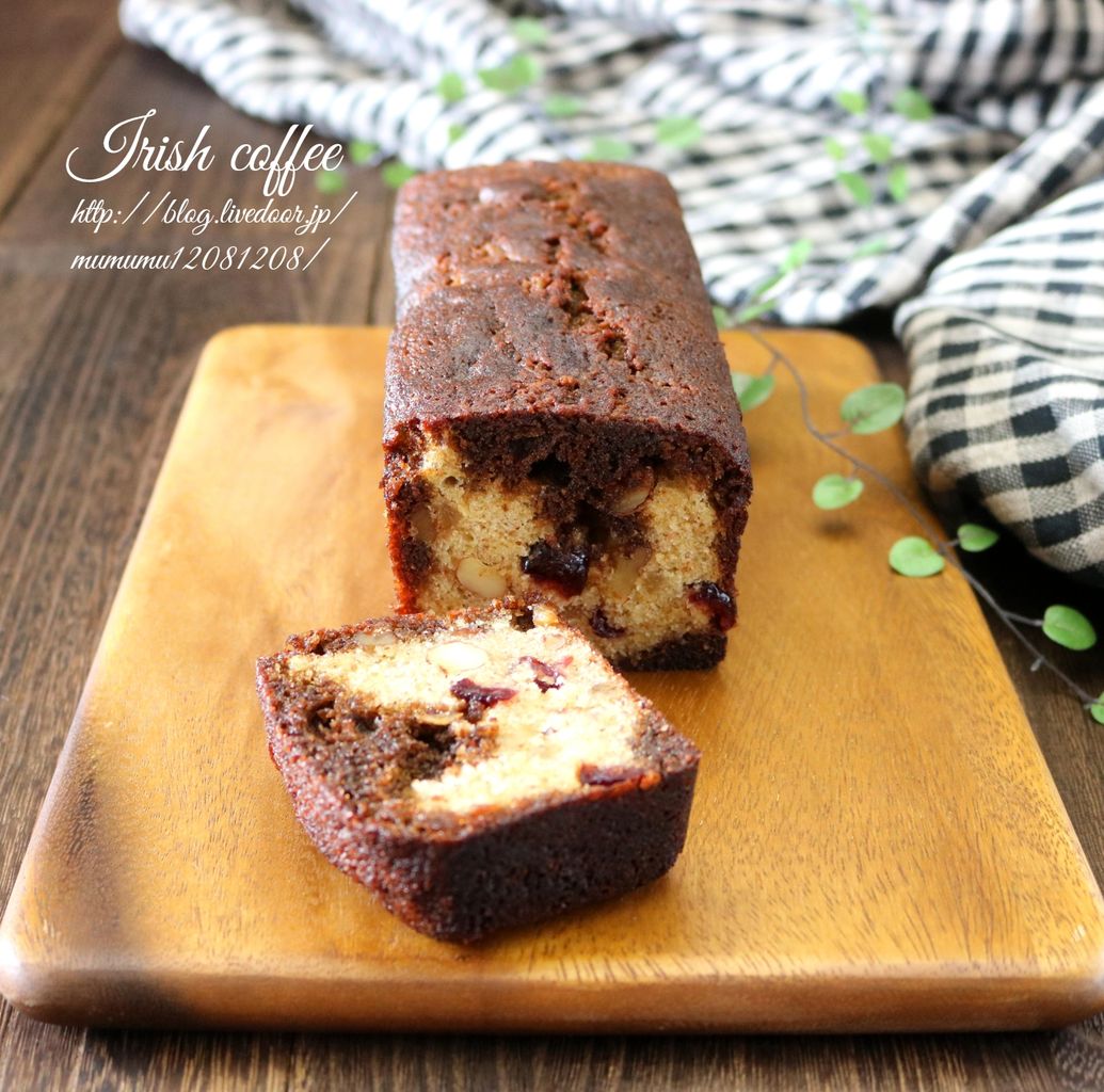 フルーツとナッツのアイリッシュコーヒーパウンドケーキ。