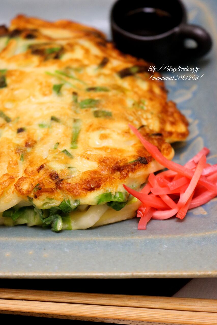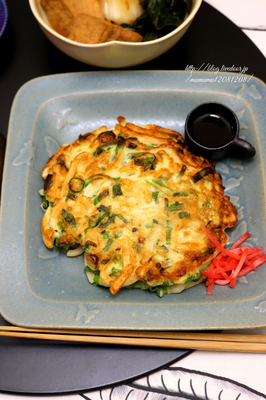 冷凍庫にうどんがあったので、うどん入りねぎ焼き。