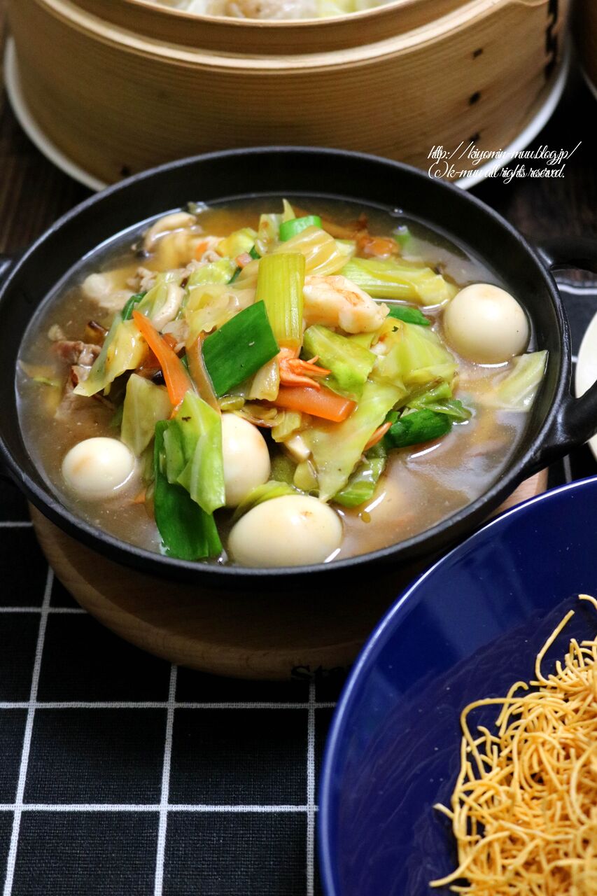 皿うどんって書いてるのに、餡かけそばって言うんだ。