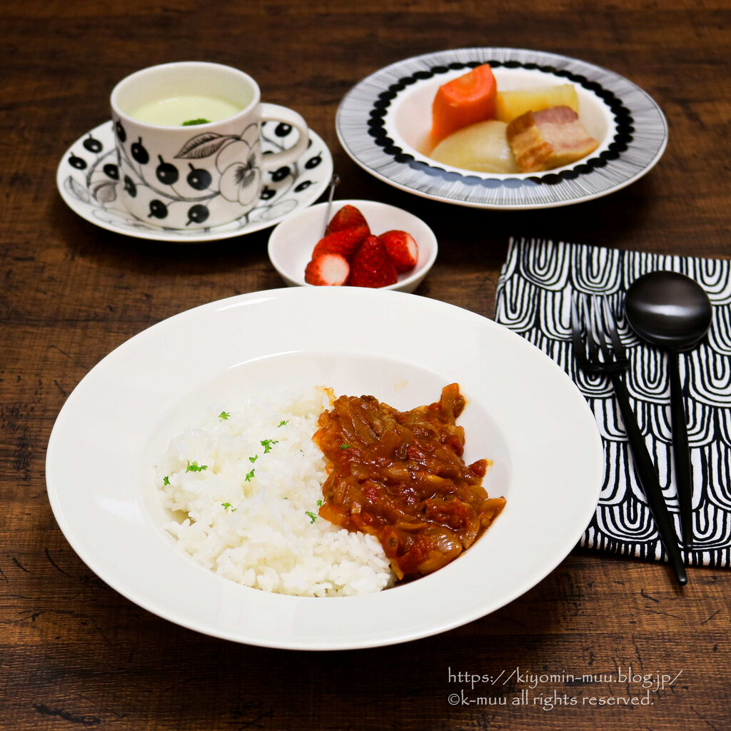 ハヤシライス・ポトフ・そら豆のポタージュ・いちご。