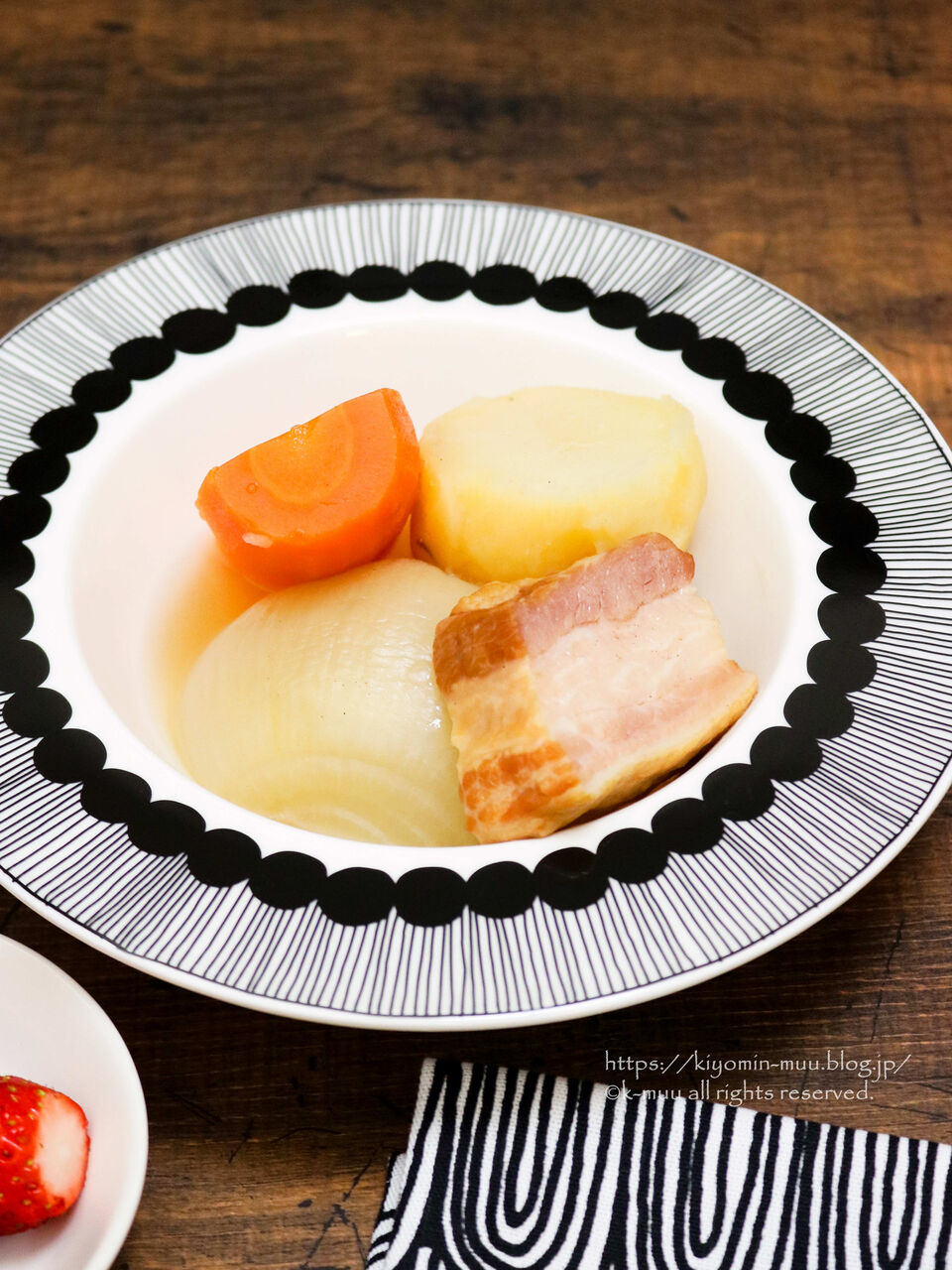 副菜は冷蔵庫にある物野菜とアップルベーコンでボリューミーポトフ。