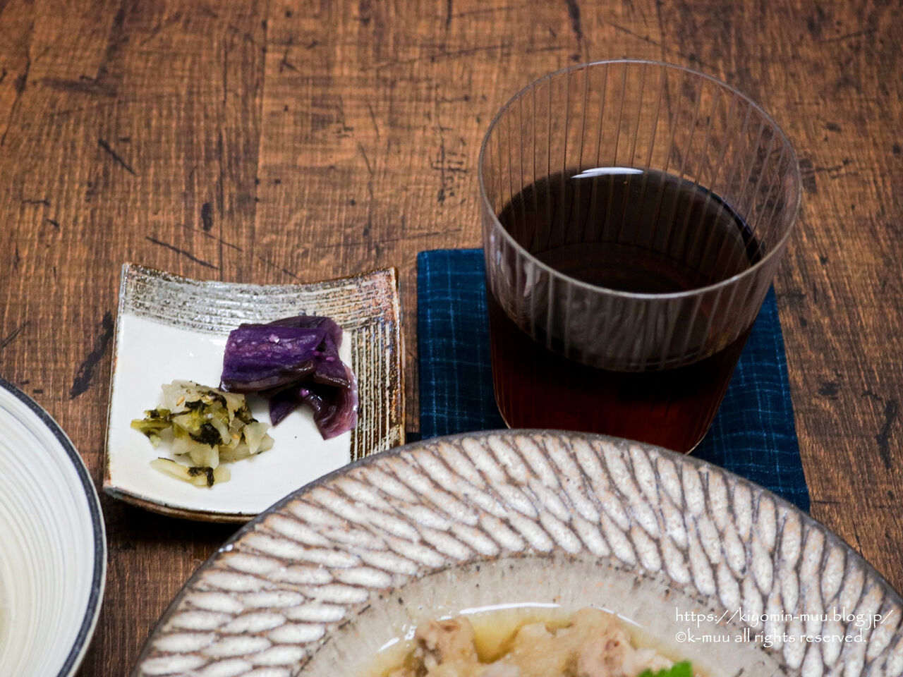 大好きなすぐき&しば漬けの漬物と、タマチャンショップの麦茶と共に。