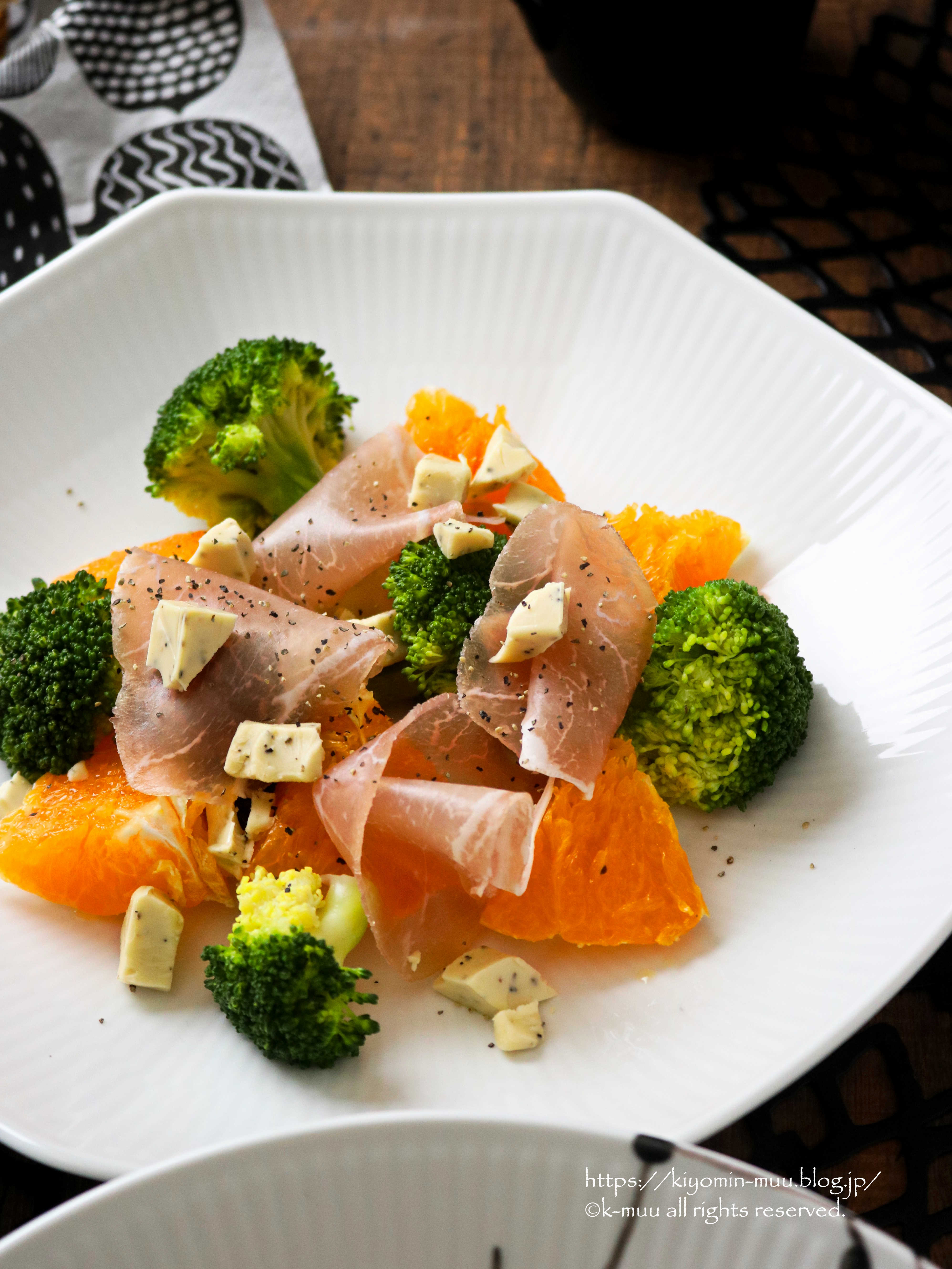 甘平とブロッコリー、ブラックペッパーのチーズと生ハムで簡単に。