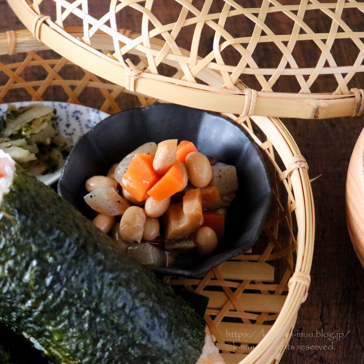 小さなおかずは五目豆と漬物はすぐき。