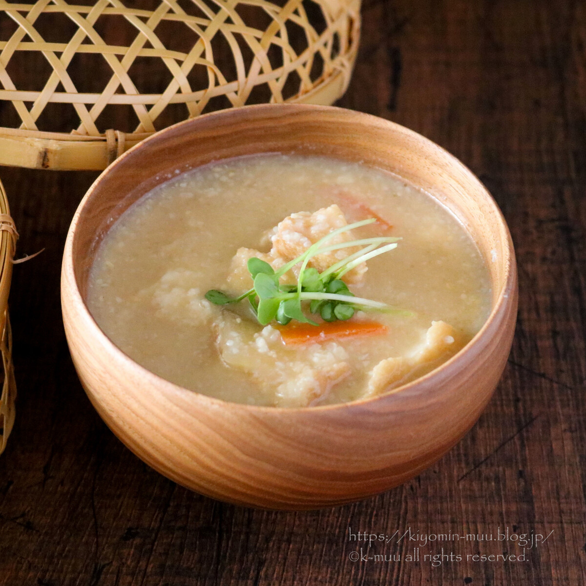 豆乳汁はとうふなんだけど、粕汁は絹揚げ&厚揚げなんだなー。