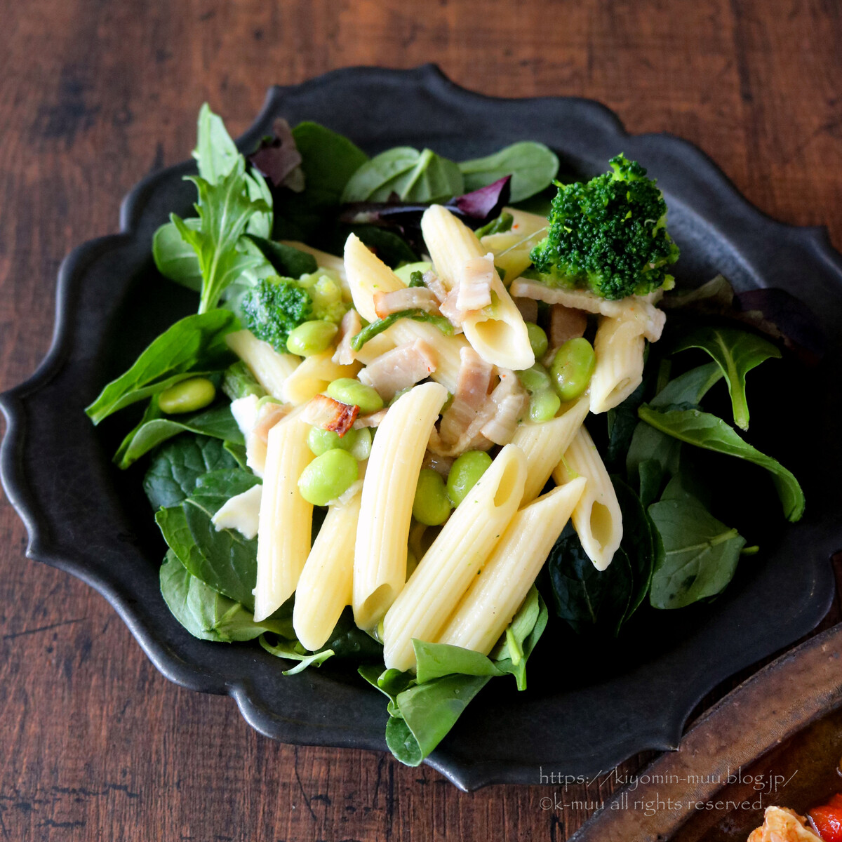 (副菜)リーフと一緒に!ペンネとベーコンのサラダ