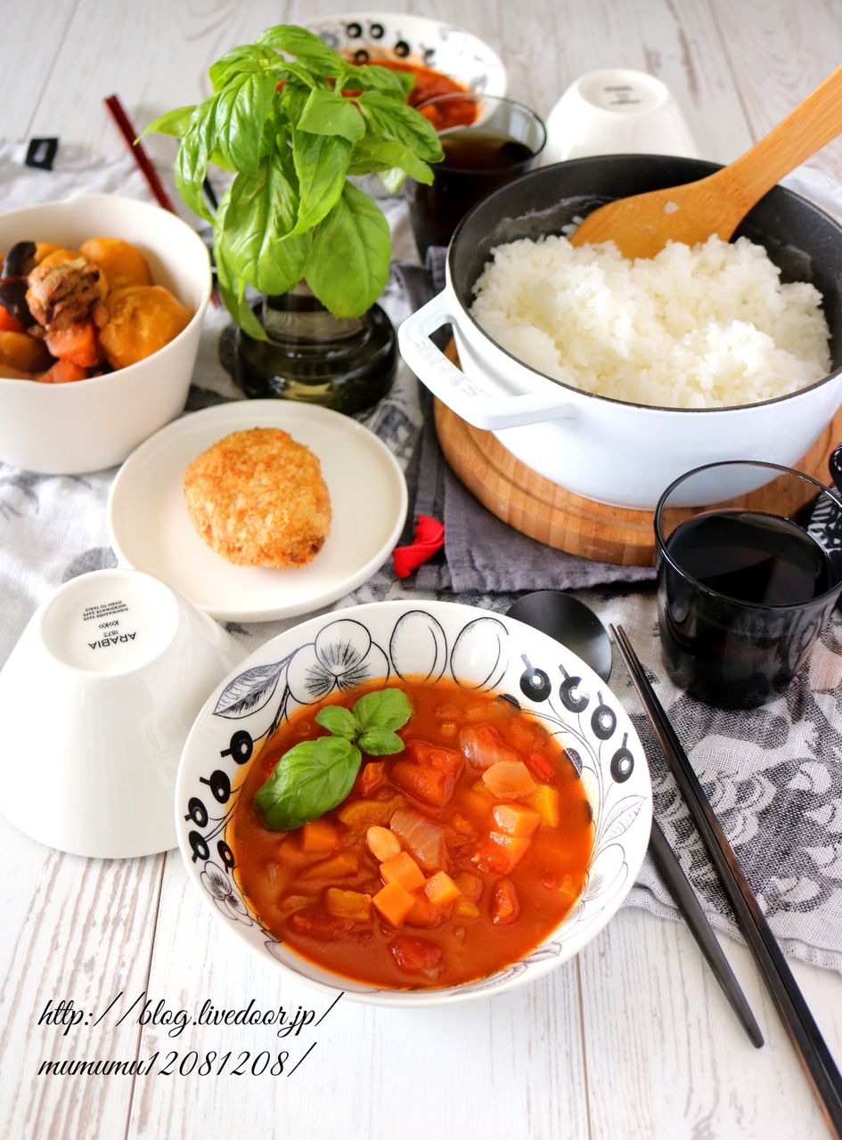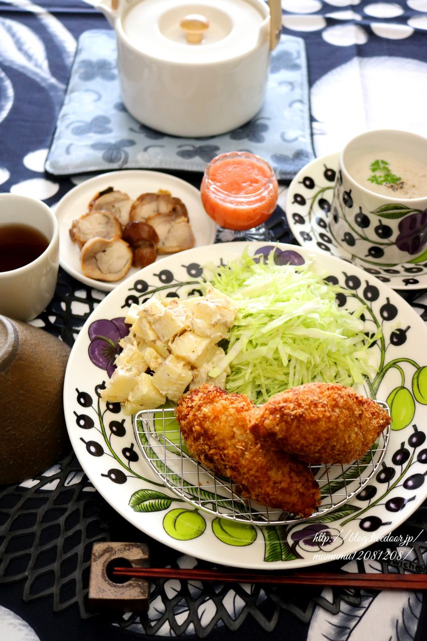 2019年10月22日 肉じゃがコロッケとか。~嫌味のつもりが褒められた~ 肉じゃがコロッケ・和風オニオンポテトサラダ、柚子胡椒味・きのこのポタージュ・鶏チャーシュー・フレッシュトマトジュース。続きを読む