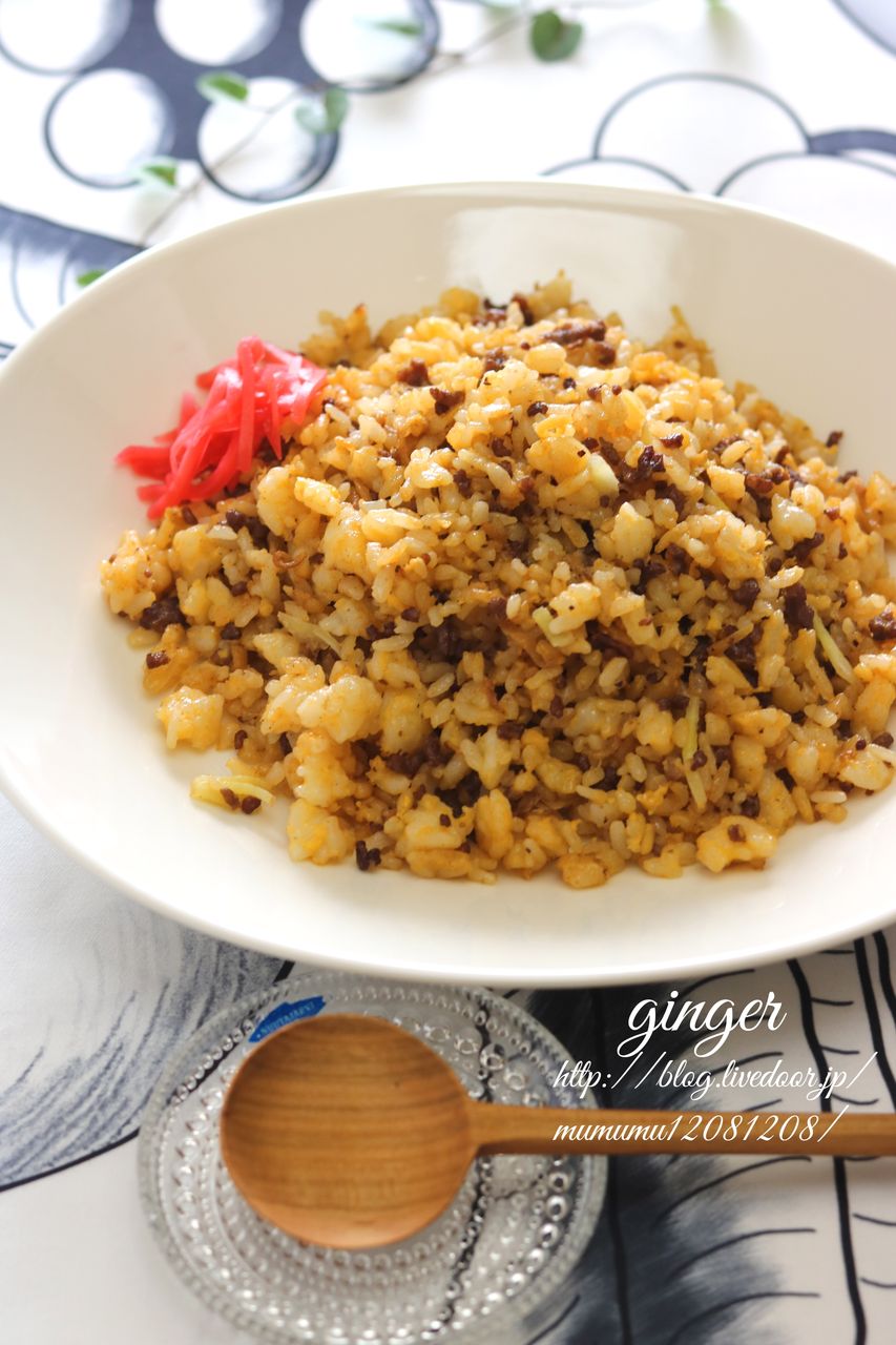 焼肉(←味)チャーハン、とりごぼうチャーシュー(マイナスごぼう)、大根とがんもの炊いたん。